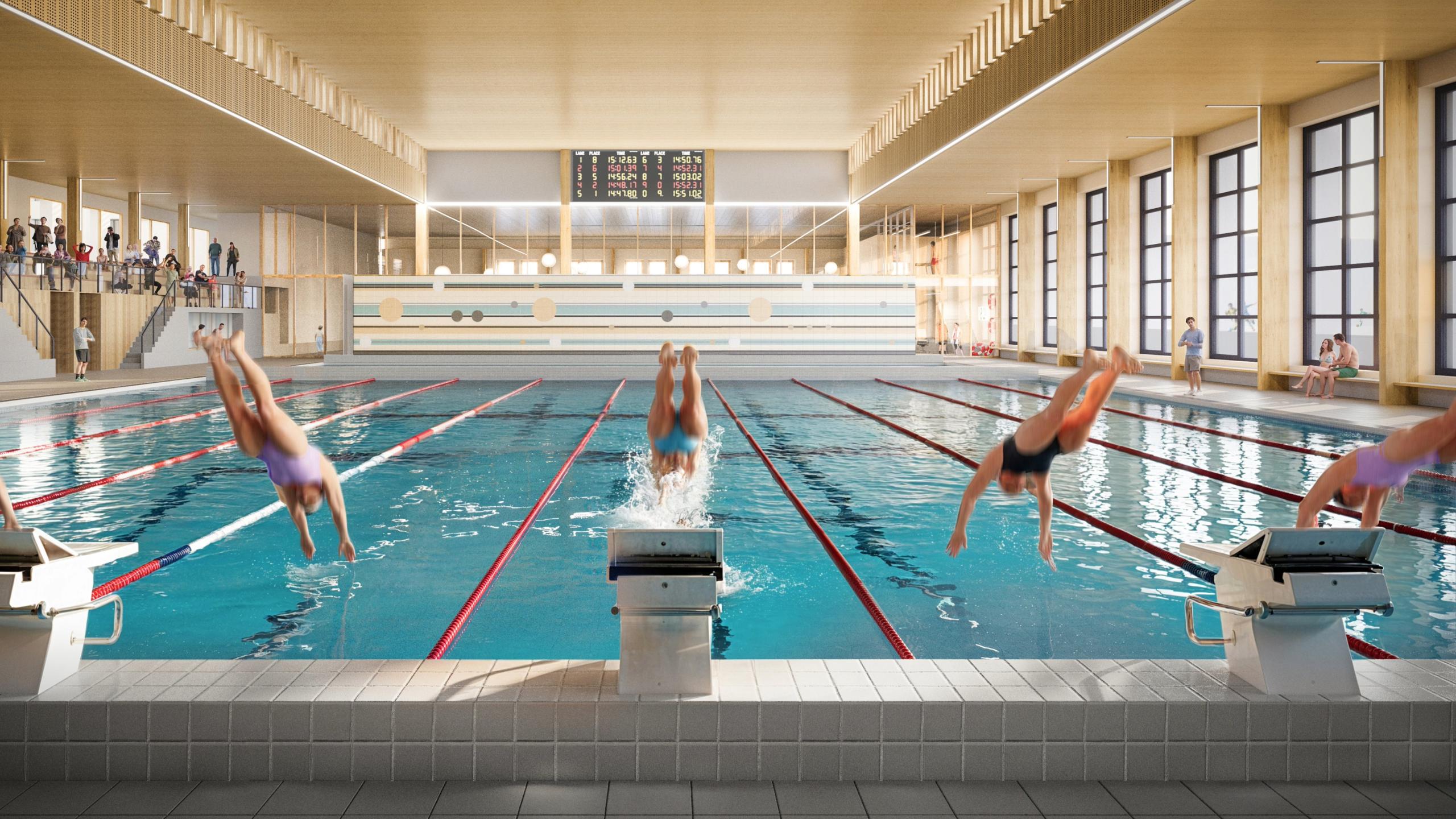 - Het wedstrijdbad is straks dankzij slimme wanden en een beweegbare bodem op veel manieren te gebruiken